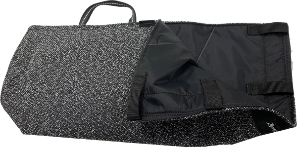A great feature of this sleeve cover is the lining is slippery so putting it on the sleeve isn’t a struggle. The sleeve cover comes with an attached rubber grip handle. If you choose to not have the handle you can simply cut off the webbed handle. Made in the USA. This sleeve cover will fit any of the ActiveDogs bite sleeves.