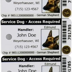 Our 3 Part Key Tag Identification Card provides all the information clearly for your Service Dog on one easy to read, high quality, ID card. When you purchase this card you will also receive a FREE entry to our online registry database which can be validated from any smart phone, tablet, or computer.