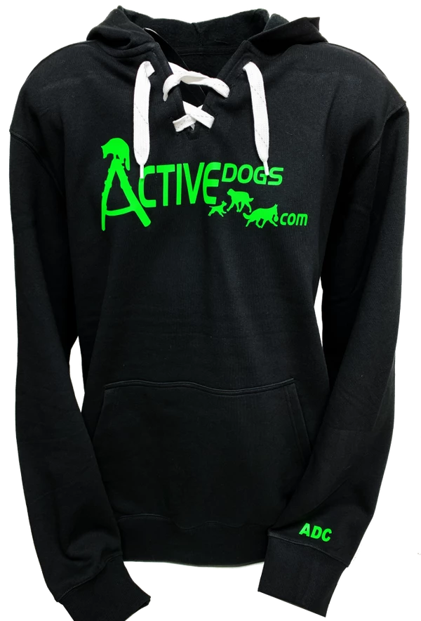 The ActiveDogs Personalized Logo Hoodie will be your new favorite hoodie! This hoodie has a great looking lace up closure on the neck line, long length sleeves and comes in 10 different fun vinyl colors. The best part you can personalize the back!