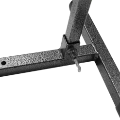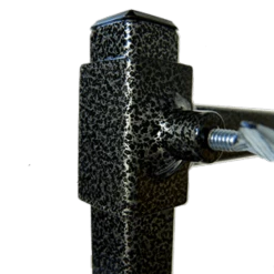 The top bar has a riveted, spring loaded clip from which you can hang the training reward. The height of the clip can be adjusted up and down, up to 32″ high. Now, taller or shorter dogs can use the ball tree and have it set for their working height.