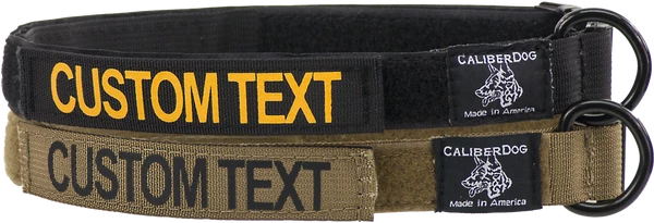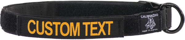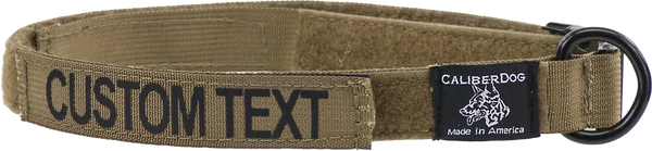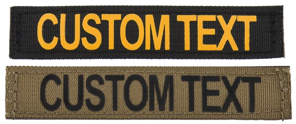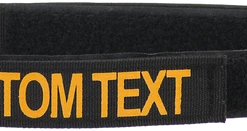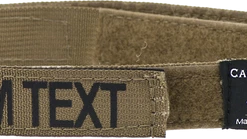 Design your own custom 1×5″ ID panel patch with up to 12 characters. Made from a 5″ long piece of 1″ wide military-spec webbing with hook & loop sewn on. Letting is done with high-quality heat press vinyl. Choose from black lettering on coyote brown panel patch or gold lettering on black panel patch. Uses hook & loop to attach securely to items, such as CaliberDog 1″ ID Collar (844101). (sold separately) Made in USA