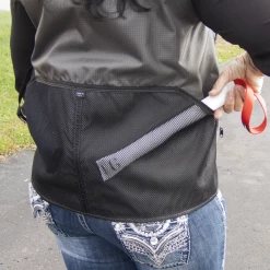 The exterior of the CaliberDog Handler Vest is made from beautiful steel gray Ripstop fabric. Ripstop fabric is light weight yet at the same time durable and tough. The interior of this vest is lined with moisture wicking fabric to keep you dry and cool when working in the heat. The front of the vest closes with a molded separating zipper. There is a back neck loop on this vest to hang up the vest when not in use. Every seam is double stitched for reinforcement. USA MADE