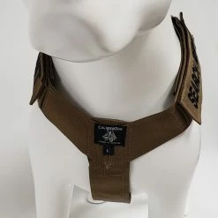 We have designed the CaliberDog K9 Tactical Harness with thought for those active working canines. This harness is made from strong military grade materials and yet light weight at the same time. There is a lot of flexibility for the dog when this harness is being worn. The CaliberDog K9 Tactical Harness makes the canine highly identifiable with places for 4 identification patch locations. (patches sold separately). Patches can be placed on the harness shoulder straps and or on the backplate of the harness. This harness has a handle that can be used standing up or flattened and hooked down on the harness. This is a nice feature to have the handle lay flat when the dog is doing search work. There is a 2” COBRA TM metal buckle on the girth strap. The buckle will not rub on the dog as it will be closed on the girth strap. All the straps of this harness, underbelly, shoulder and girth straps are all adjustable. The shoulder straps have an extra one-wrap loop to keep them secure. There are 2 cast metal V-rings on this harness. The front V-ring works well for use with the dogs leash and the back V-ring works well for tracking/trailing. They will not flop under the harness on the dog’s skin as they are attached on top of the harness backplate. You won’t worry about the backplate falling off as it is attached to the harness. The backplate gives the working canine a little padding on the dog’s backbone and Velcro space for additional patches. The CaliberDog K9 Tactical Harness is offered in two colors, black or coyote. Two girth sizes available: size M/L will fit 21” to 32” and size XL will fit 28” to 44” girth. Plain