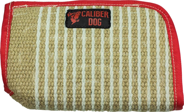 The Short Sleeve Jute Cover is intended for use with the CailberDog Short Sleeve. The Cover features 3 hook and loop closures on top for securing the cover to the sleeve. There is also hook and loop on the cover that attaches to the sleeve. The cover is made from a jute material. The inside is padded for extra protection. The inside color varies.