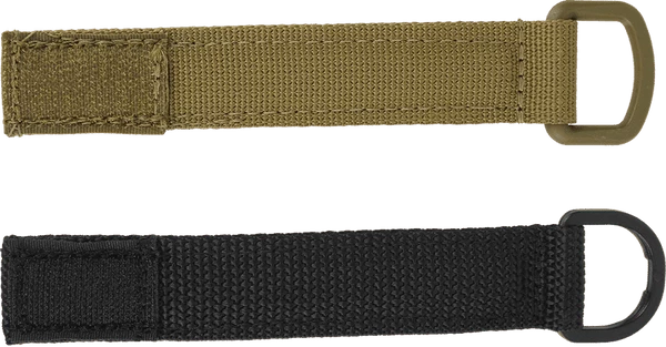 The Webbed MOLLE sticks are 6″ long and have a plastic D-ring on the top. The D-ring makes pulling and removing the sticks easier. The MOLLE sticks have a hard interior and hook and loop on the bottom so they will stay in place when attaching an accessory to the vest. The K9 Tactical MOLLE Vest and all the MOLLE accessories have MOLLE webbing on them. You weave the Webbed MOLLE Sticks through the vest webbing and accessory webbing to connect them together. These webbed MOLLE sticks stay secured to the vest and won’t slip out. Sold in sets of two. USA MADE