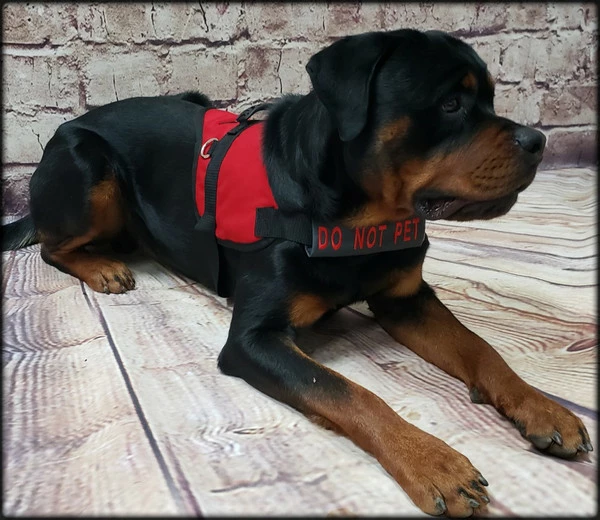 Our Chest Strap Identification Covers are a great way to show a custom message with your working dog. Choose your own text, up to 20 characters. Choose from 2 different lengths & 13 different colors! The Custom Chest Strap Identification Covers are padded and lined to give your dog comfort. Covers open and close with hook & loop so they are very easy to put on and take off. These strap covers fit a wide variety of vests. MADE IN THE USA