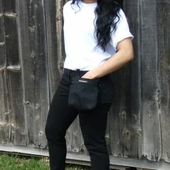 The Clip-On Bait & Phone Bag is designed to be used with pants that do not have belt loops. I use my Belt Loop Bait Bag nearly every day. The issue arises when I wear pants that do not have belt loops on the pants, like leggings. So I invented this handy bag that simply clips onto the pants waist band. I also generally have my cell phone with me and that gets messy in with my bait. On the Clip-On Bait & Phone Bag there is a zipper front mesh pocket so the phone can be easily seen and heard when it rings. Because the mesh pocket zips you don’t have to worry about losing your phone when running. If you use head phones then the headphone cord can slip out the top of the zipper, leaving the phone secured in the pocket. Like our Belt Loop Bait Bag this bag can be worn in the front, back or sides of your pants waistband. This bag constructed with a double layer construction. The interior is made from a water resistant vinyl so it is very easy to wash out, making clean up a snap. The exterior is made of Cordura fabric and the heavy mesh pocket is on the bag front. This bag is black in color and MADE IN USA.