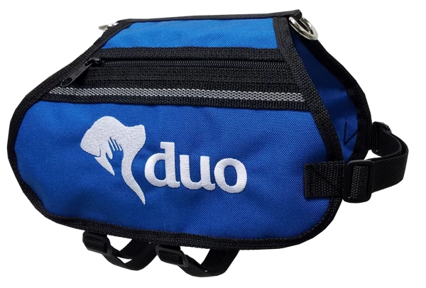 We have designed our Custom Logo Butterfly Dual Pocket Dog Cape Vest for those dogs who need to transport a few objects that do not require the larger backpack or saddlebag vest. The Custom Logo Butterfly Dual Pocket Dog Cape Vest is lightweight, simple and very functional. The pockets do not expand like the saddlebag or backpack vest; yet, they are wide enough to fit a checkbook size wallet, sunglasses, keys, pill bottles, identification papers, etc. in them. Since the vest has a wide pocket design, we have placed two girth straps on the Custom Logo Butterfly Dual Pocket Dog Cape Vest to keep it in place while the dog is moving. Both girth and chest straps are adjustable.