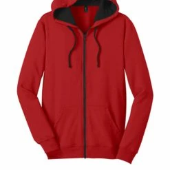 The Custom Logo Embroidered Hoodie is cotton/polyester blend which is pre shrunk. The 50/50 blend allows for warmth with out being bulky. They are available in four sizes & four colors; black, red, blue, or gray. Accent black draw string, hood lining, and zipper on all colors.