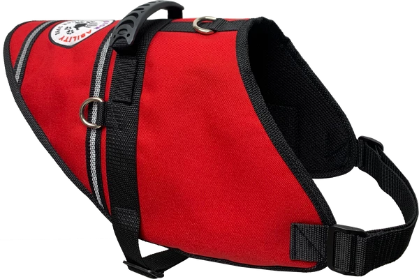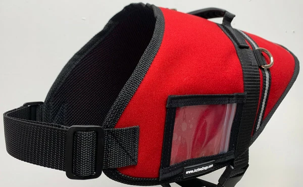 This vest is made of a tough and highly durable nylon/urethane coated fabric that is padded and lined for your dog’s comfort. The clear vinyl pocket on the left of the vest is perfect for your ID or other important papers you need quick access to. The reflective straps across the back and sides of the dog vest provide added visibility at night. All seams are double stitched and bound with nylon web for a beautiful, finished look.