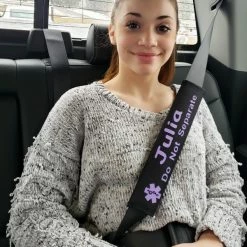 The ActiveDogs custom text medical alert seat belt cover serves multiple purposes. It address and identifies traveling with your service dog, medical condition, or gives you a large area to display any other type of message you desire. Having this on you belt can be helpful for emergency personnel in the event of an accident or emergency.