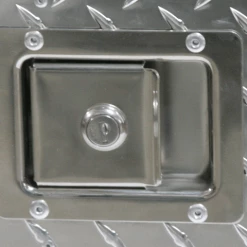The full ventilation design permits excellent air movement on all sides. This is a great feature for dogs that remain in the dog crate for long periods of time. The double door crates feature a door on the end and a door on the side. This full ventilation dog crate comes in 3 different sizes. The smallest crate measures 36″ long, 28″ tall, and 24″ wide. Most inside wheel-well measurements in trucks, vans, and SUVs are 48″ wide. This way you can fit any two of the small crates we offer in your vehicle side-by-side. The medium crate measures 42″ long, 32″ tall, and 28″ wide. The largest crate measures 48″ long, 32″ tall, and 28″ wide. The gap between the bars on the crate is 2″. The top and bottom of the dog crate and the doors are polished, thick diamond plate aluminum. Each door is laser cut, double reinforced, and features a stainless steel, locking door latch with one key. The doors can be latched with or without locking it. class=”text” align=”left”>Each side panel of the dog crate has two recessed handles. The handles are spring loaded and stay flush with the side of the dog crate when not in use. These handles make carrying the crate safe because you do not have to put your hands in through the bars to move the crate. class=”text” align=”left”>There is a welded bar inside the dog crate side wall to hang a flat sided pail (sold separately). This prevents the dog from tipping over it’s water so easily, therefore having a dry kennel to lie in while traveling or at training. You can also hang a crate fan on the outside of the crate.