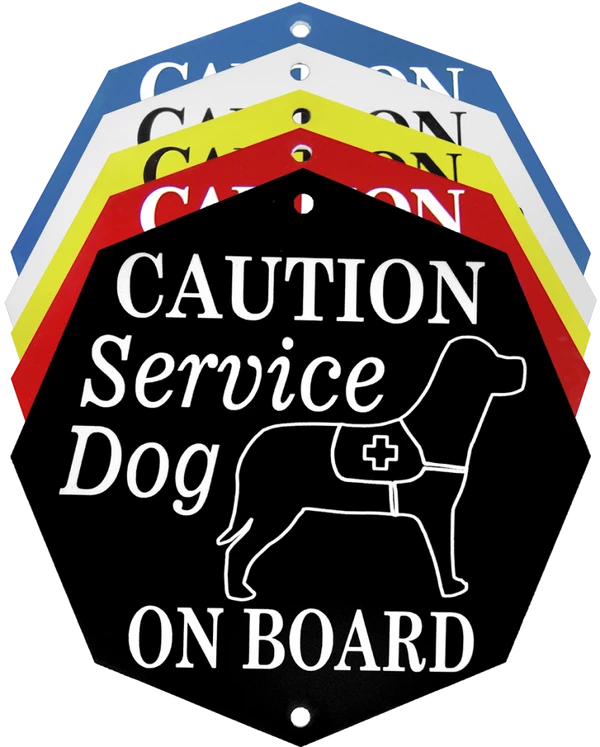 Inform people you have a service dog! The Engraved Hanging Vehicle Sign is made from colored acrylic with recessed lettering and design. Includes two suction cups for hooking on either side of the sign. High-quality laser engraving done by activedogs.com in the USA.