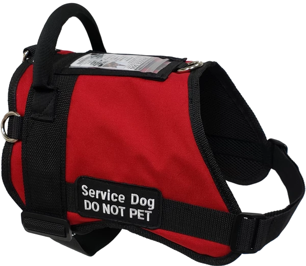The Service Dog Form Fitted Active Cut Harness Vest has four heavy welded D-rings so you can attach any of our accessories such as; bridge handles, clip-on bags, Identification carriers, or engraved tags. Choose from 13 colors and 3 size choices. Made in the USA