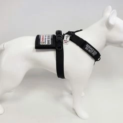 The No-Pull Service Dog Strap Harness has a great range of adjust-ability. Both the chest straps, underbelly strap, and the girth strap is adjustable. There are no loose floppy straps on the No-Pull Service Dog Strap Harness. It comes with two Service Dog patches that are Velcro backed so they can be changed out. The entire back plate is also Velcro so patches or an ID pocket window accessory can be added, (sold separately). The handle is a raised molded easy grip handle with two D-rings. The D-rings on the sides of the handle can work to attach an extended bridge handle, (sold separately). This harness is black in color and is offered in two sizes. Girth size for M/L harness is 22” to 32” and the size XL harness will fit a girth from 29” to 44”. Bridge handles, custom patches, ID window pocket, and ID cards are sold separately.