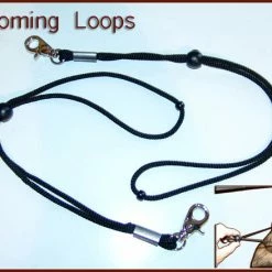 We have designed our grooming loops with convenience and fast on and off in mind. These loops are lightweight, easy on and easy off locking loops. They can be adjusted and locked in place with one hand, leaving the other hand free to attend the dog. For size adjustment of the dog’s neck just push the lock button in and then slide the lock to the desired size needed and release the button. The button snaps back into position to lock it in place. The thin width of these loops are practical since they take up less space on the dogs neck giving less struggle to groom the hair under and around the neck area. The Grooming Loop attaches to your grooming arm with an easy to open trigger snap. Made in USA
