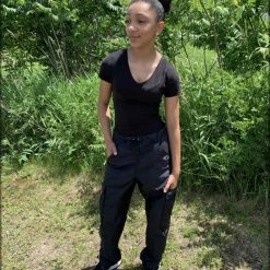 The ActiveDogs handler training pants are cargo style pants with added features. The Handler Training Pants are made of soft durable wind and water-resistant nylon fabric. All the pants seams are double stitched seams for long wearing durability. The elastic self-adjusting waist band makes the pants easy to put on. The waistband is comfortable and has the added feature of a tie able draw cord. The leg bottoms have an elasticized cord lock so the bottom of the legs can be tightened around your ankle and bloused. This is such a great feature making it fast and easy to get your pant leg into your boots when tracking in that wet morning grass. The trouser pockets in front are reinforced deep pockets and the right-side pocket has with a special little inside pocket for cards. On the side of pant legs, there are large expanding cargo pockets. Features of the cargo pockets are hook and loop closing top flaps with easy grab plastic triangles. These open triangles can also be used to attach a pull tab. The right cargo pocket has a side zipper. This works well to put your phone in as it will not fall out when running. The left cargo pocket has an open top back pocket. This is where you can put your tracking or training remote for quick access. In the center of the back of the pants there is a D-ring. This is an excellent feature to hang the ball or tug away from the dog during training. The Activedogs Handler Training Pants come in five sizes. MADE In The USA