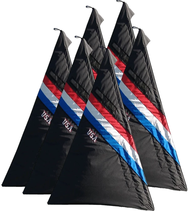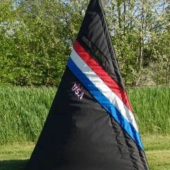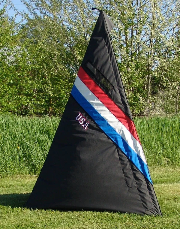 This blind is the definition of function and features. Like our other blinds, it is made here in the USA. The fabric of this and all of our blinds is no cheap vinyl, canvas, or tarp material. Our blinds are made of marine grade exterior materials for years of lasting outdoor use. We have blinds in our training field that have been outside 24/7 in our northern winters since 2002, and are still in working shape. This blind has a beautiful patriotic Red, White, Blue, and Black color scheme. It is embroidered and appliqued with “USA” on both sides.