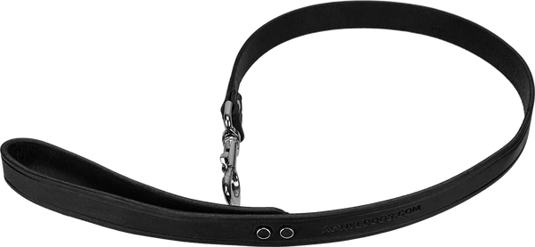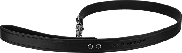 This leather leash is made of 1″ wide, supple, black latigo leather and features nickel-plated hardware. Latigo leather is a durable, flexible, softer leather and it breaks in faster. It is dyed solid all the way through, so it will not fade. Because of the conditioners that are infused with oils during the process latigo leather is almost waterproof. It will not dry out like most harness leather. It can be easily cleaned and oiled after use.