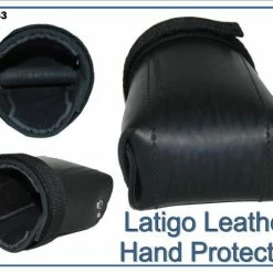 Hand protection with a interior grab bar. The Leather Hand Protector is like a hard leather mit of protection. The Leather Hand Protector is made of thick, latigo leather and is padded on the interior for comfort. The grab bar (inside the hand protector) and the adjustable Hook and Loop strap (around the wrist area) help to keep the hand protector in place. It can be used on right or left hand. Can be used with the bite suit or bite sleeve during training to protect the fingers/hand.