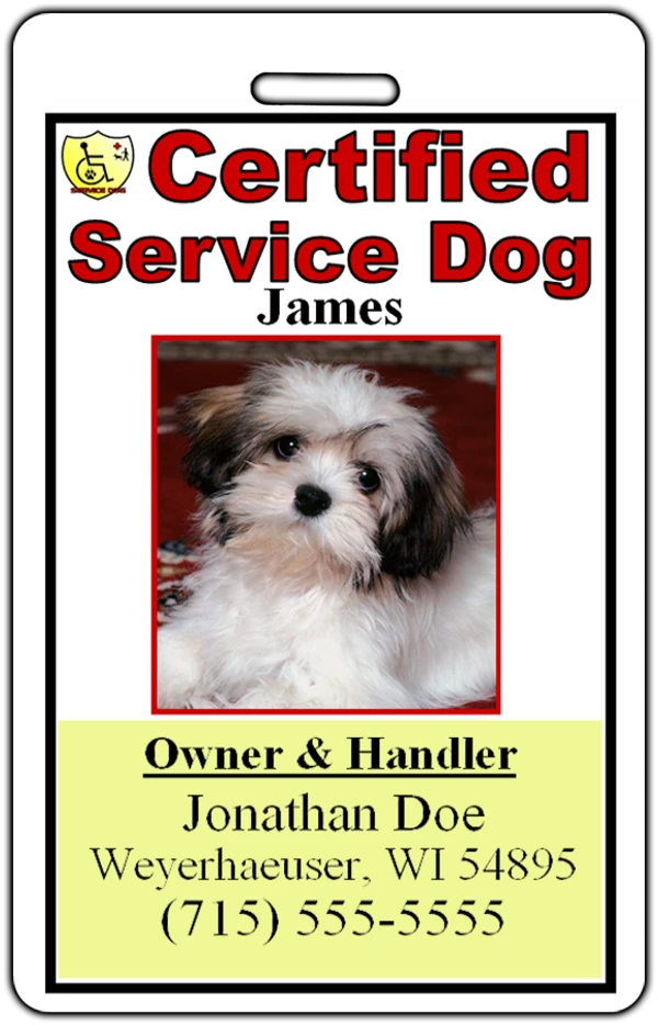 If it is a Service Dog ID, we will put the ADA information (American with Disabilities Act) on the back of the ID. This information addresses the issue of permitted access to public buildings. If it is for a Therapy Dog the ID will be double sided.