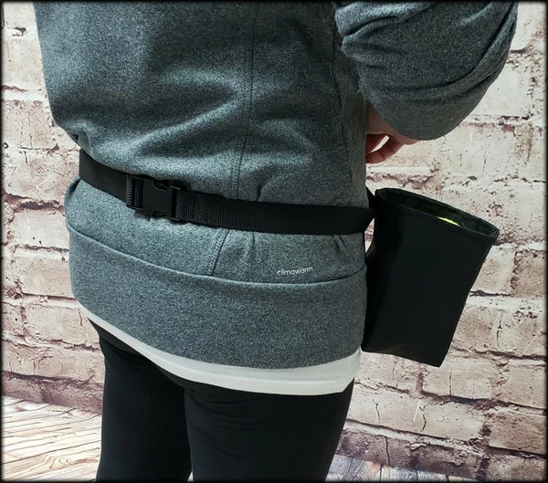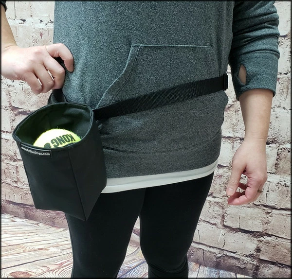 This is a perfect pouch for your tennis balls, XL Kong or reward treats. Reward balls and treats are great motivators to use during dog training but are not always conveniently accessible. This is where this pouch comes in handy. It is made from water repellent durable material. It can easily be fold up and stored when not in use. The pouch is lined giving it a long life use. It comes with an adjustable belt. This belt will fit a waist between 28-52″ inches. The pouch can also be used on your own belt and will fit up to a 2″ belt with 2 adjustable loops making it easy to achieve the right height. Pouch size is approx 4″ wide, 4″ deep, and 6″ tall.