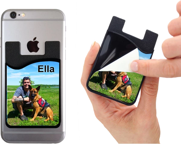 The ActiveDogs personalized card caddy is a two-in-one silicone phone pouch designed to fit credit cards, IDs, or cash that also features a personalized removable micro fiber screen cleaner. A 3M adhesive strip attaches the Card Caddy to the back of your mobile device. The soft cleaning cloth gently cleans dirt and finger prints from your screen. To use, simply peel off, clean your screen, and return the micro fiber screen cleaner to the exterior of the pouch. Get way to show off your beautiful pup while keeping your card(s) handy & accessible.