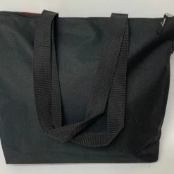 The Service Dog or Therapy Dog Zip Top Tote’s exterior is made of nylon/PVC backed fabric. The interior of the bag can be easily wiped clean. The tote has two pockets on the exterior–one for a water bottle and another for your cell phone. The tote’s handles are long enough to be worn over the shoulder.