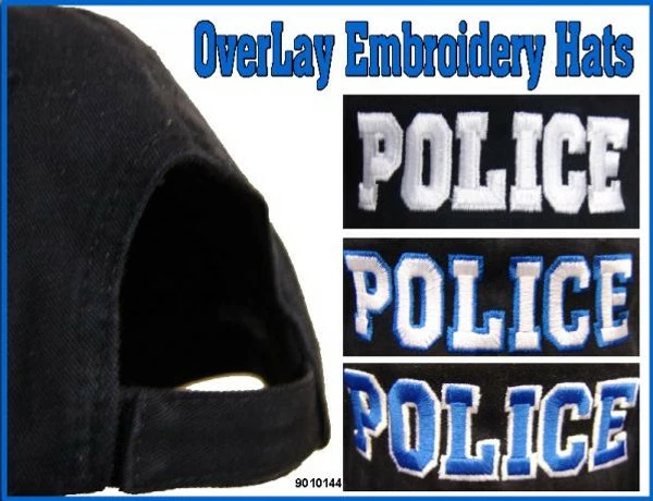 We have embroidered this hat with a high thread count, POLICE lettering graphic using durable polyester threads.