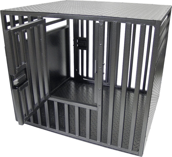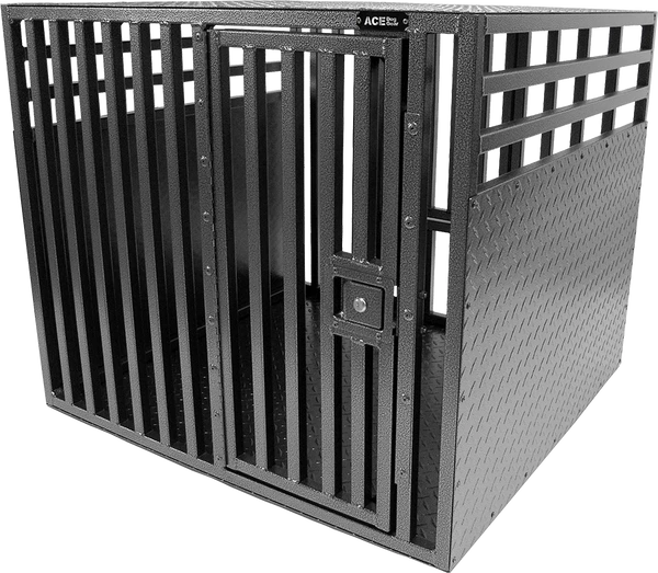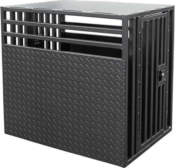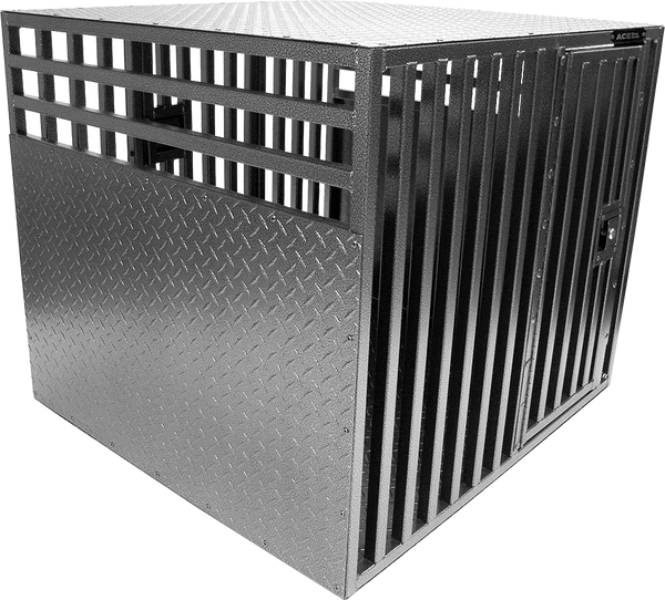 Made from lightweight but strong aluminum that is TIG welded for a quality finish. Full tread floor gives dog grip while vehicle is moving. Flexible usage configurations with one lockable door on each end. The beautiful powder-coated finish is extremely durable. It is a two step process which produces a very hard and durable surface. Powder coated inside and outside the crate. Designed and made in the USA by Activedogs.com. Choose from two available sizes.