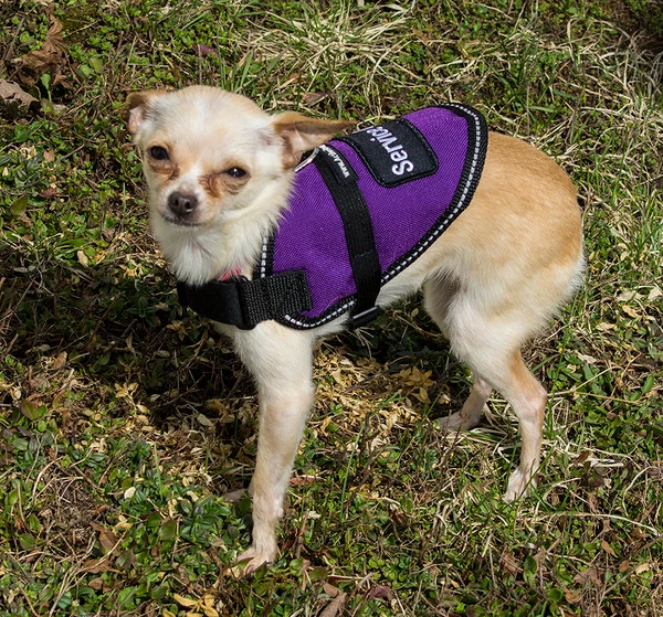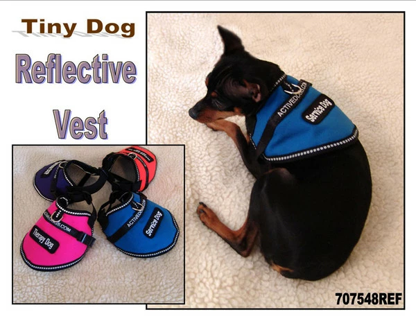 Our Reflective Small Dog Vest is designed for the small working dog. It is made with weather resistant 1000 denier nylon/urethane coated fabric and lined with quilted fabric for comfort. The seams of this vest are bound in reflective webbing as an added safety feature for your dog.