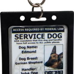 Service Dog IDs will have the ADA (American with Disabilities Act) information on the back of the ID. This information addresses your rights and protects your full access required by law to public buildings.