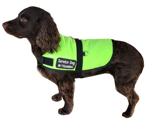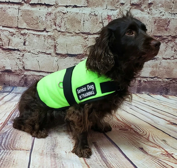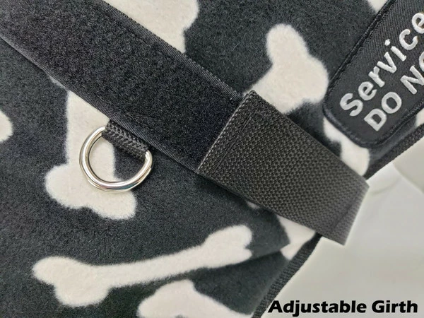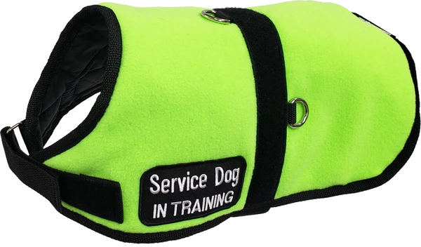 Our Service Dog Insulated Fleece Vest is great for chilly weather when your dog needs a little extra warmth but still needs to be identified as a working dog. This soft fleece vest comes in a variety of fun patterns and colors with five different sizes to choose from! This vest has a plush fleece exterior and is lined with a poly filled quilted nylon material to give your dog extra comfort and warmth. This quilted lining has a satin finish so the dog hair does not easily stick to it.