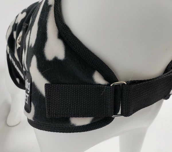 The girth and chest straps are easy to adjust with hook and loop closure so you can achieve the perfect fit. The vest also has a total of 3 d-rings on it; 2 below the girth strap & 1 centered on top. These d-rings allow you to attach additional accessories like a bridge handle, bags, id tags, or any other clip-on accessories you choose. This Service Dog Insulated Fleece Vest is a fuller cut style vest so it covers more of the dog’s back and sides for extra warmth, this also allows plenty of space for additional patches.
