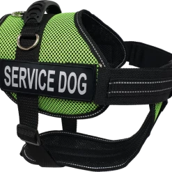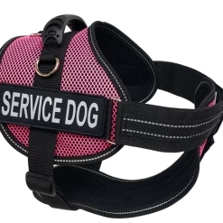 The harness-style mesh vest comes with a contoured chest connecting pad that uses the same breathable backing as the vest. The adjustable chest and girth straps of this service dog vest connect together with the chest pad so the vest stays in place while your dog is working. The vest can be put on easily using the nylon side-release buckle, and there are no floppy strap tails since the strap ends are built into the dog vest. The vest and chest protector are both trimmed in a reflective webbing for optimal safety. A molded handle on the back of the dog harness keeps your dog close so that you have control in any situation. The vest’s D-rings make attaching a leash and bridge handle easy. Service dog kit is available in other sizes and colors, and is made in the USA.