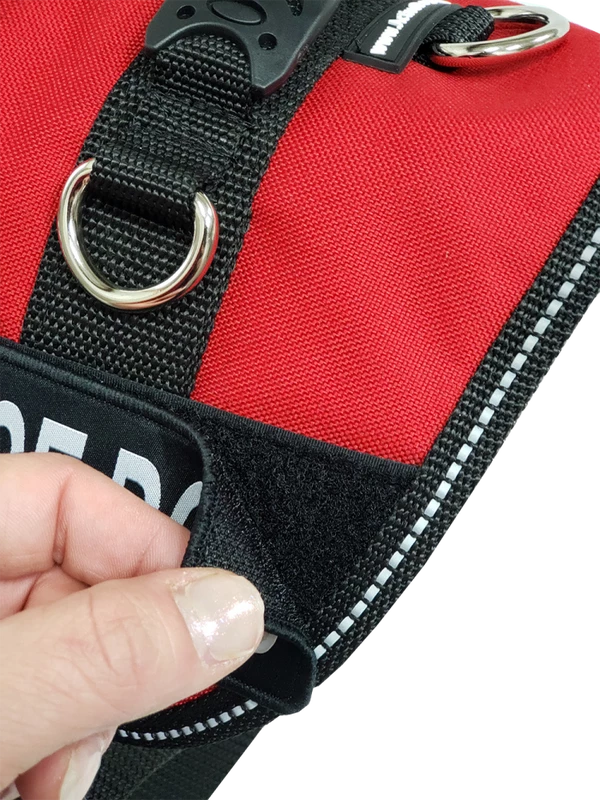 You can effectively identify your dog as a Service Dog with the large highly visible reflective Service Dog patches. These patches are attached with commercial grade Hook & Loop, so they will stay attached, but can be easily removed to switch out patches as desired.