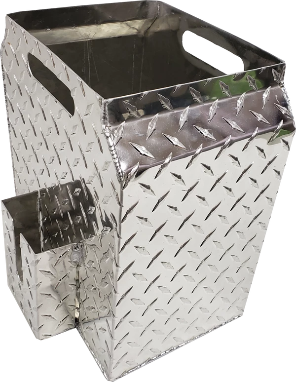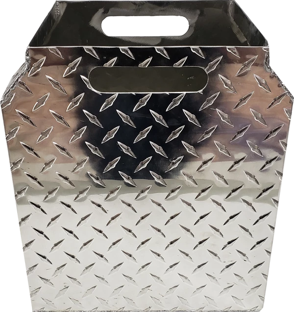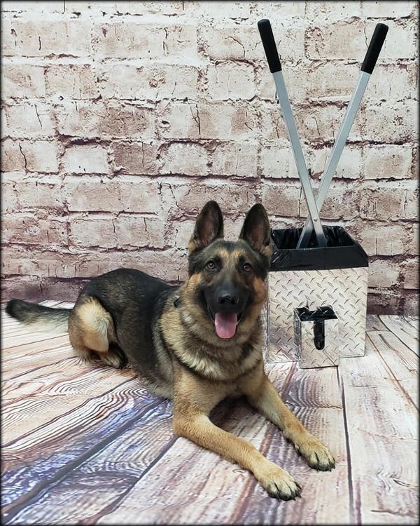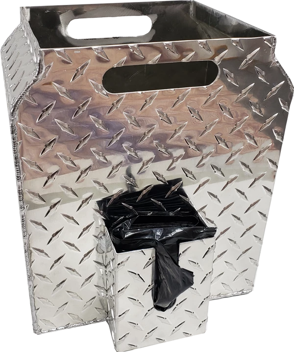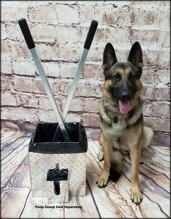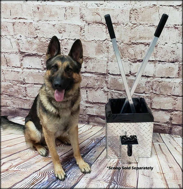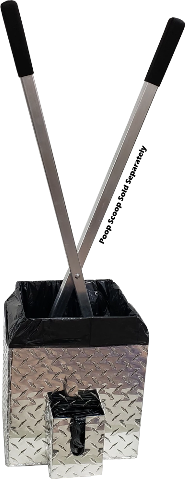 This simple but so functional bucket has been years in the making. I have used a 5 gallon bucket with the poop scoop to carry the “crap” after picking it up. My biggest problem with that is the scooper and pail always tip over if they are not placed up against something to brace them. This Best Ever Poop Scooper Storage & Disposal Bucket solves that problem and address other issues like cleaning out the pail and scooper. The bucket is designed in the shape of the poop scoop so the poop scooper stands up in the bucket without tipping over the bucket. The bucket has a welded built on disposal bag holder and comes with a package of heavy mill bags, (refills available). Another great feature is that the bottom of the bucket has drain holes in it so you can just set the poop scooper in the bucket and spray both of them with the garden hose to wash the scooper and bucket and they will drain clean onto the ground. The top of the bucket has a contoured shape so you get less back splash from the garden hose when spraying. If the bucket is stored outside no problems because the rain will just wash through the bucket. We all have probably had a messy bucket left outside and then fill up with crap and rain, OMG gross. This Best Ever Poop Scooper Storage & Disposal Bucket will never rust as it is made of diamond tread aluminum and is welded for strength and durability. The top has two easy grab and carry cutouts for moving the bucket. The storage and disposal bucket is easy to use; place the disposable bucket liner bag into the bucket, fold the liner over the top edge of the bucket, clean up the dog poop, pull out the disposable bucket liner, throw it away, rinse the scooper and bucket, then leave them to drain and dry until next time.