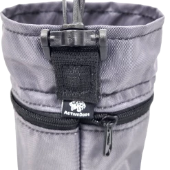 A perfect little pouch to carry treats and it also features a separate zippered pocket that holds a roll of poo bags. This is a nice feature as the roll of poo bags won’t be in the way when you reach in the pouch to get the treats. It has a darted bottom so it will stay open when you want to have quick access of the treats.