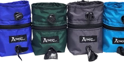 The Activedogs.com Treat Pouch & Waste Bag Holder has an elastic draw corded top so you can cinch closed the top of the pouch. It has a clip on the pouch back so you can attach this pouch to your pants belt loop, a leash, your bag, or on your dog’s harness or vest. This treat pouch is offered in eight beautiful colors.